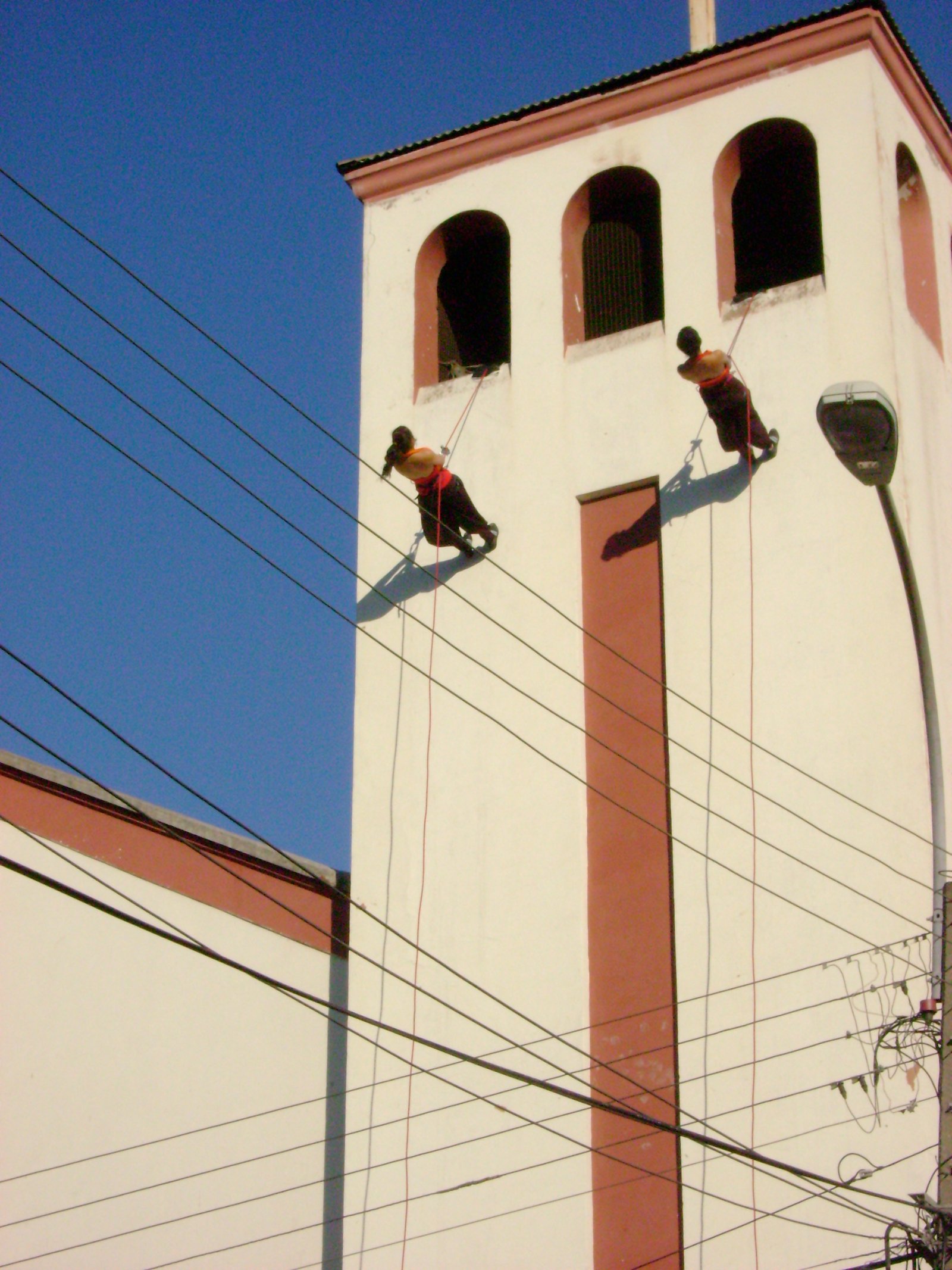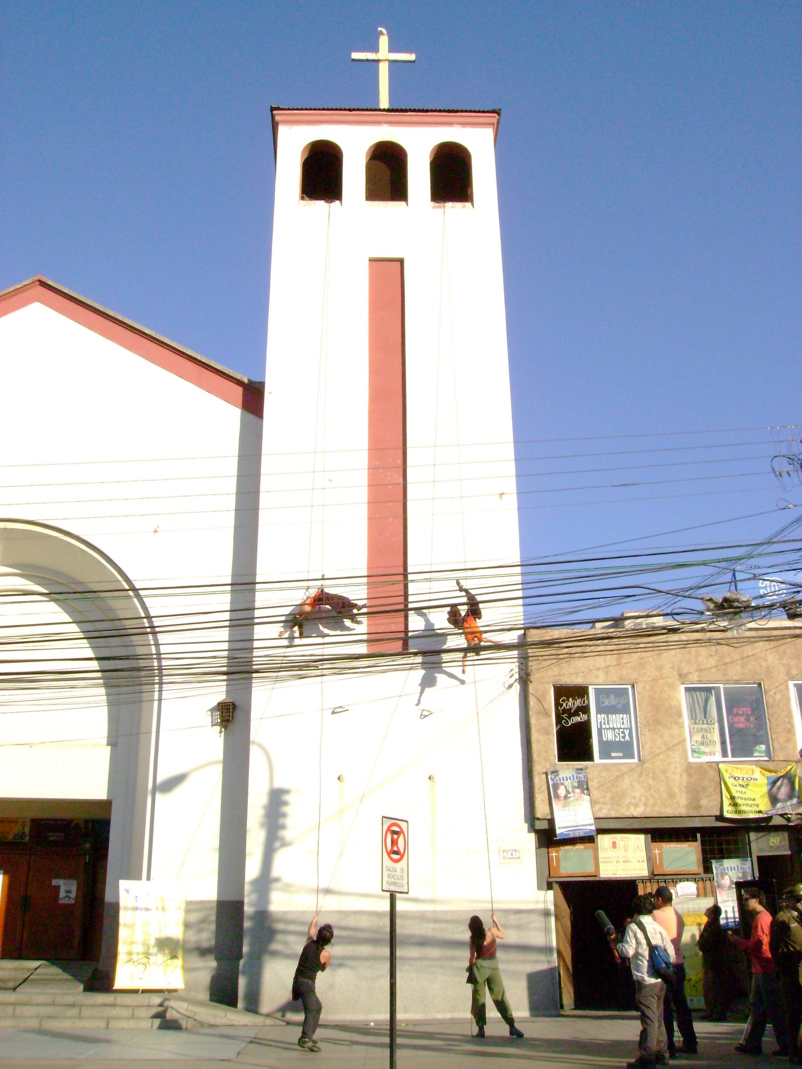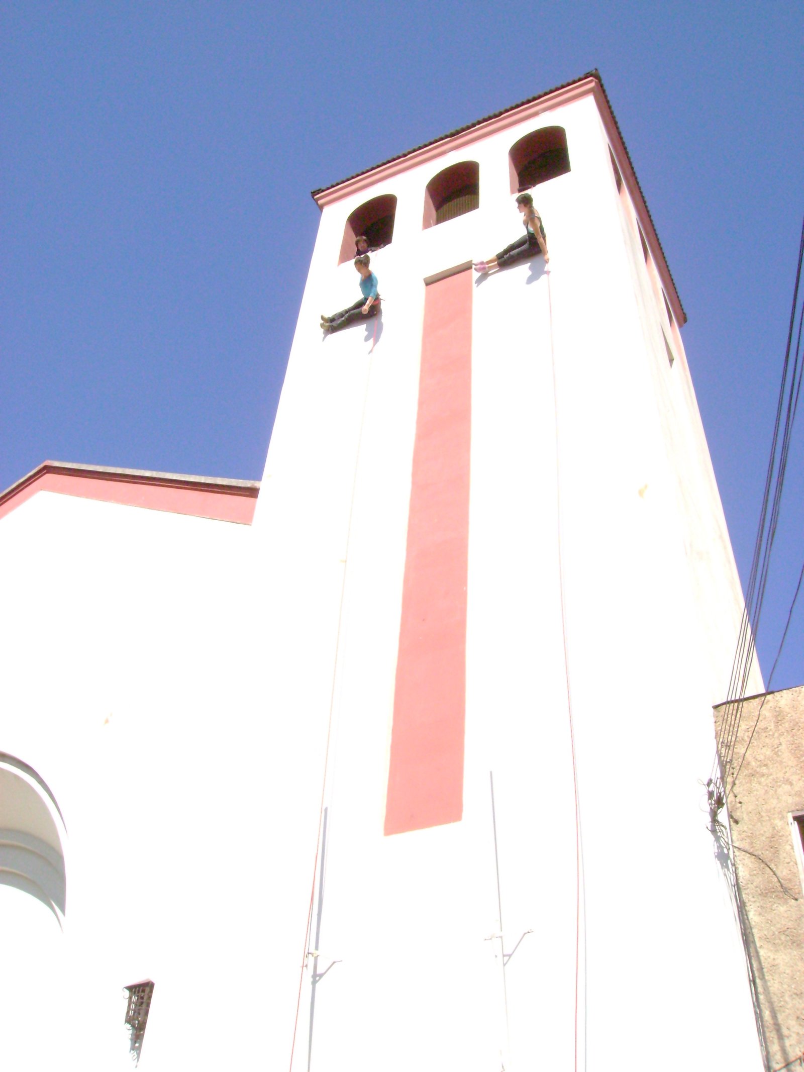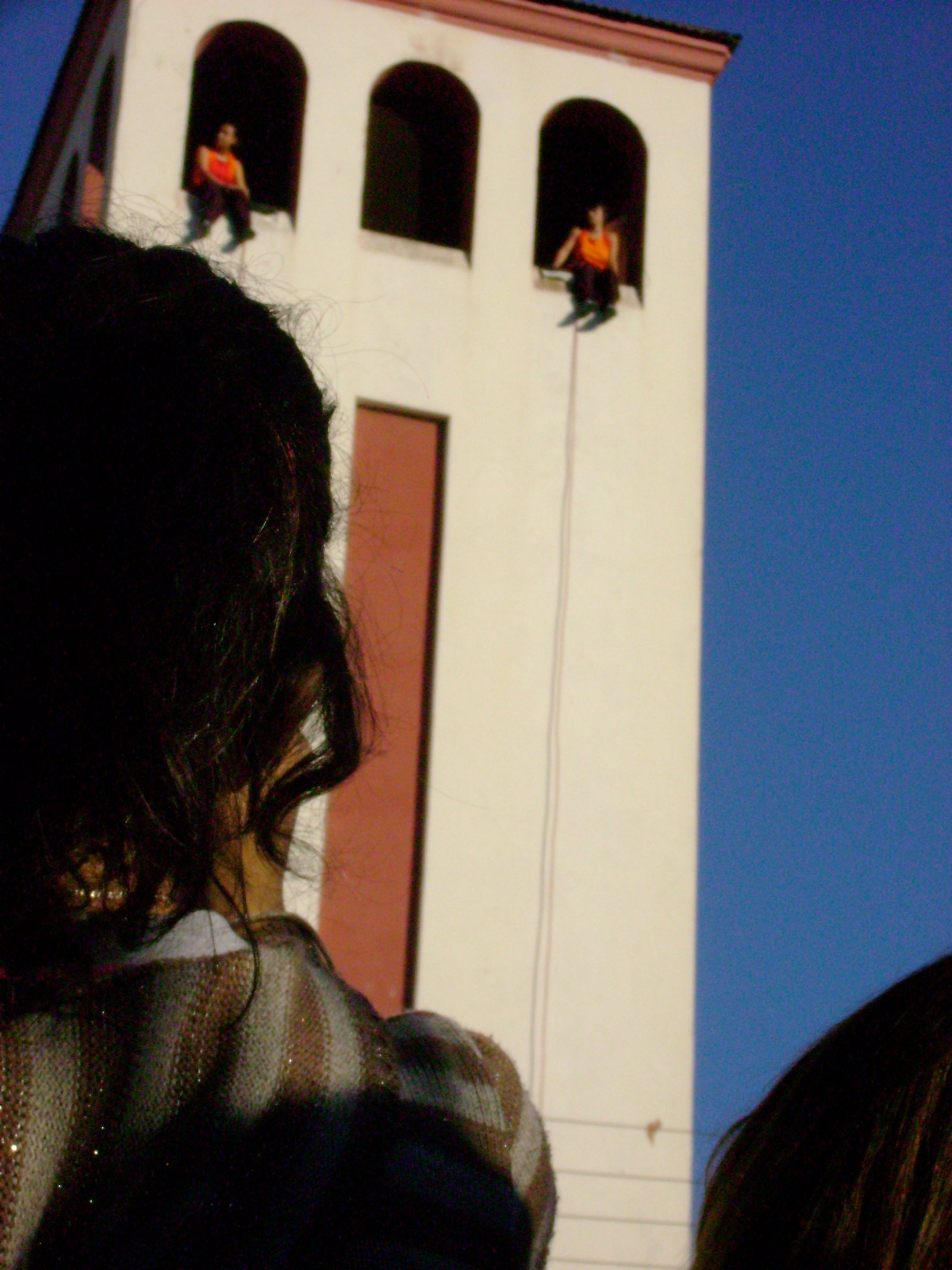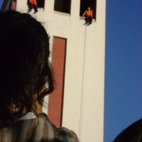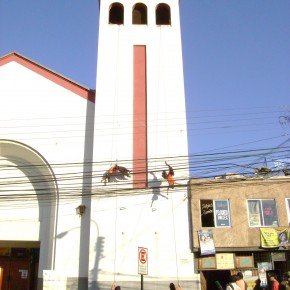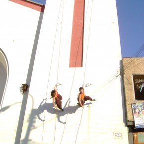 El año 2008 escenalborde presenta una coreografía aérea en el campanario de la igasia de la ciudad de San Antonio, como parte del evento inaugural de la celebración regional del Día Internacional de la Danza, en la ocasión el público recibió con sorpresa esta intervención en el edificio de más altura de la ciudad.