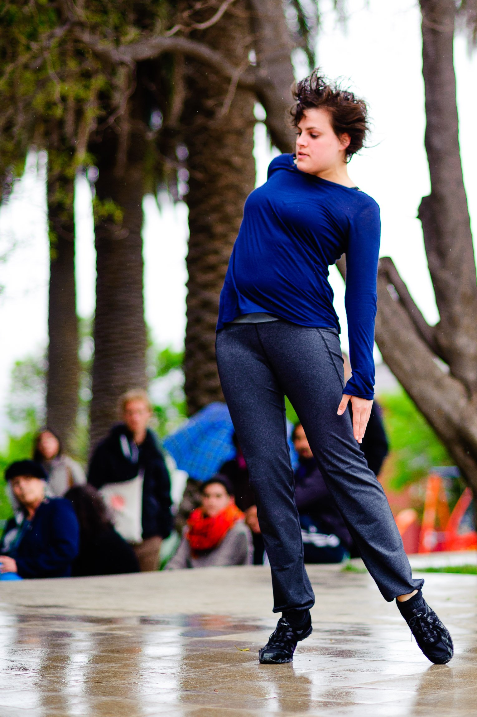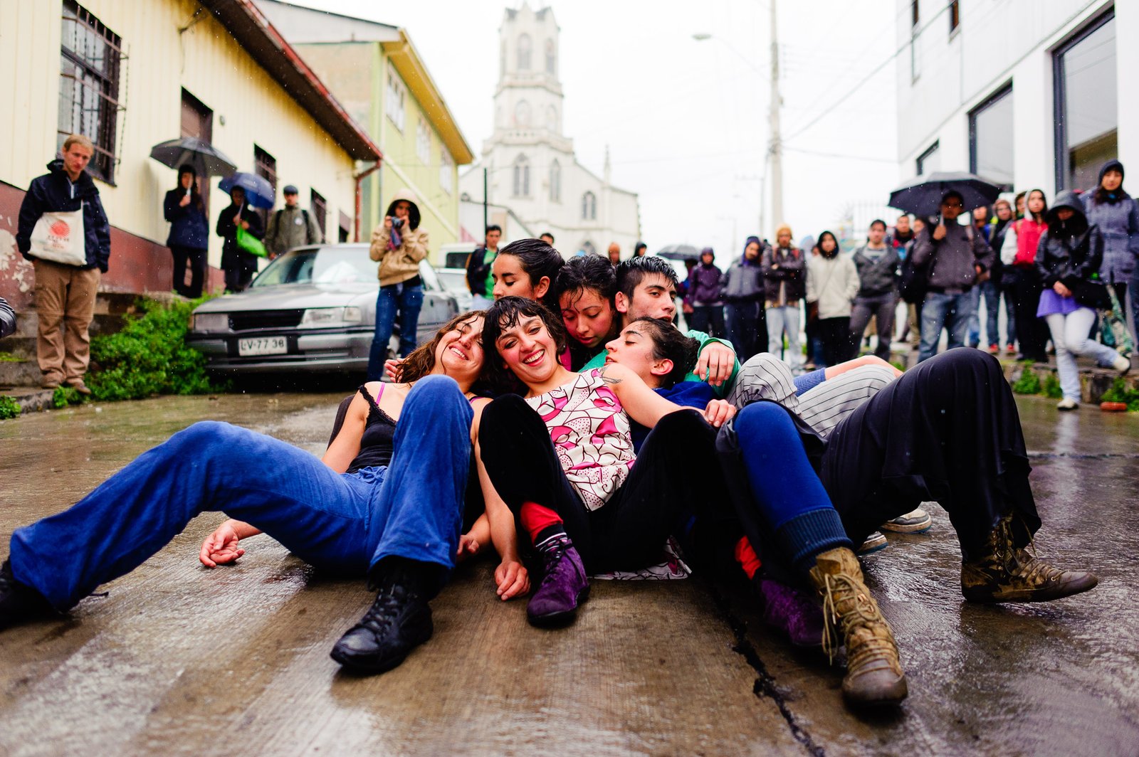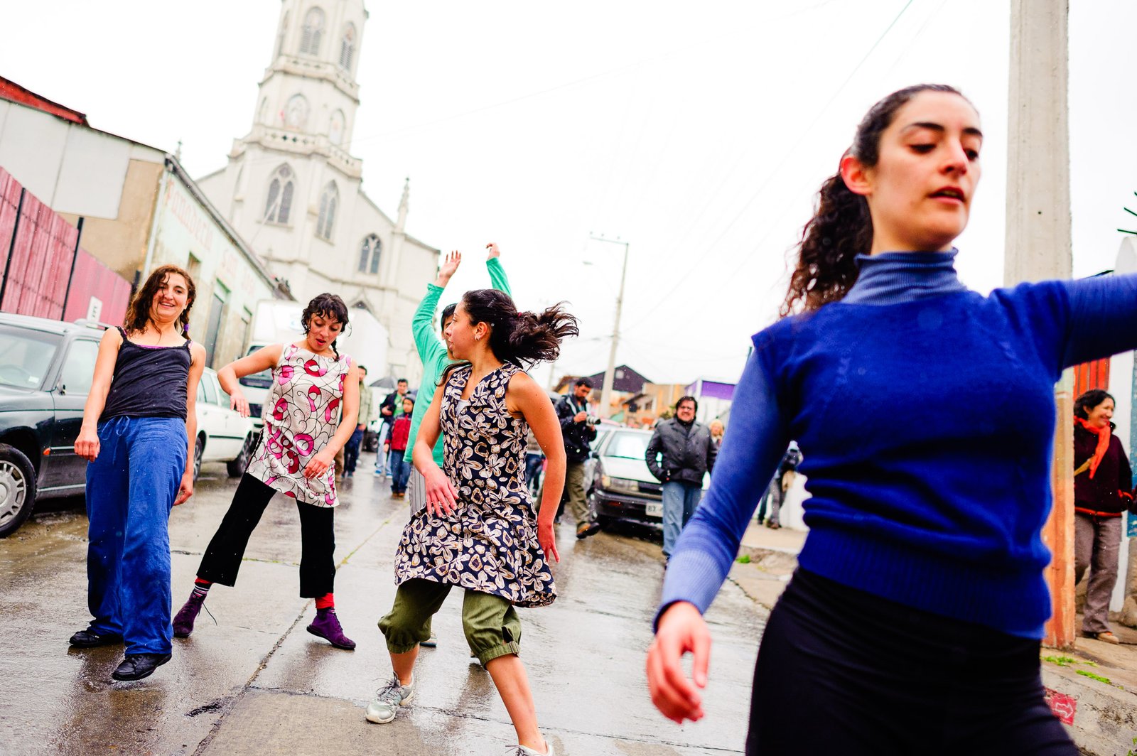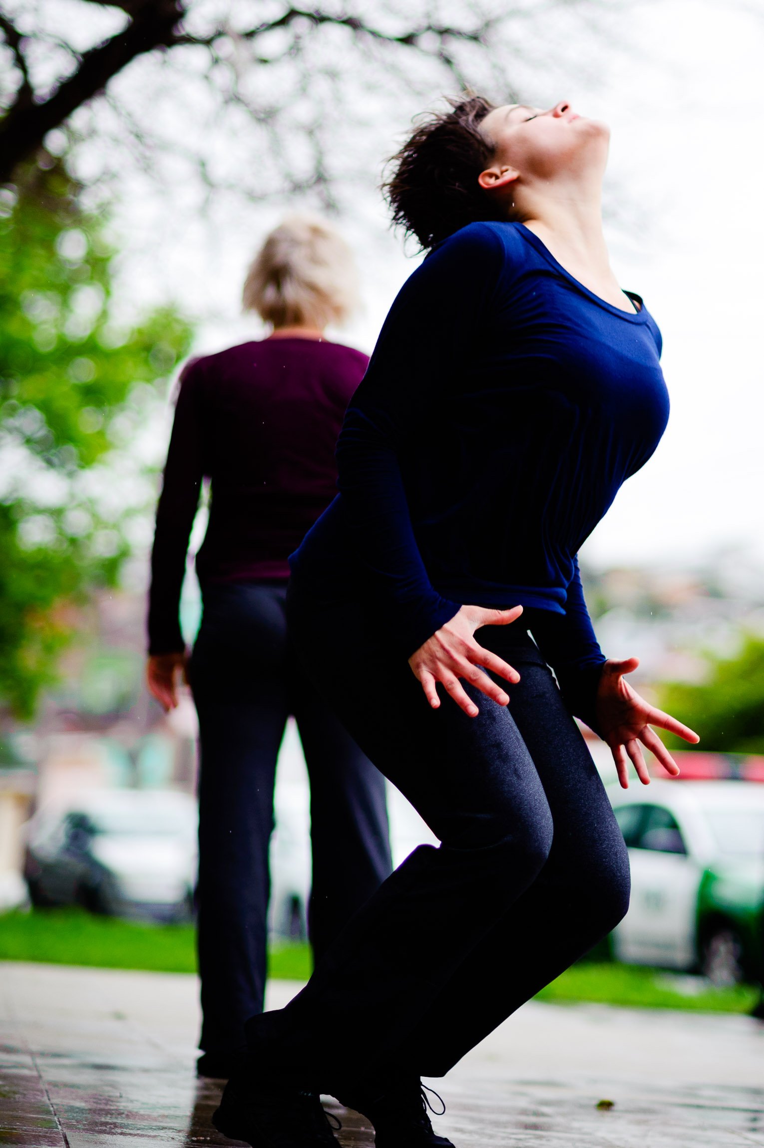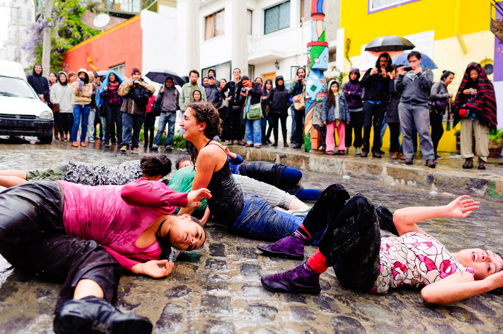 El domingo 21 de octubre el clima nos sorprendió con una constante y fina llovizna. Hasta último momento nos preuntabamos si el público llegaría. Ya sí fue, un grupo grande de personas se fueron acercando y ubicando bajo los árboles de la Plaza Mena, par apresenciar las intervenciones «Decussation # 2» a cargo dela Compañía de Lilian Moussa de Qubéc, Canadá, y «Kokoro» de las argentinas Quío Binetti y Analía Rodríguez. El clima no parecía colaborar, pero eso no fue impedimento para que el grupo de bailarines locales de «Un organismo» experiencia guiada por Iván Sánchez Ramírez, co director del Festival Danzalborde, avanzara por las calles acompañados de una procesión de personas que sostuvieron bajo la lluvia hasta el final el clima de la presentación. Verdaderamente para los que estuvimos alli, un acto colectivo de encuentro en torno a los cuerpos en movimiento.