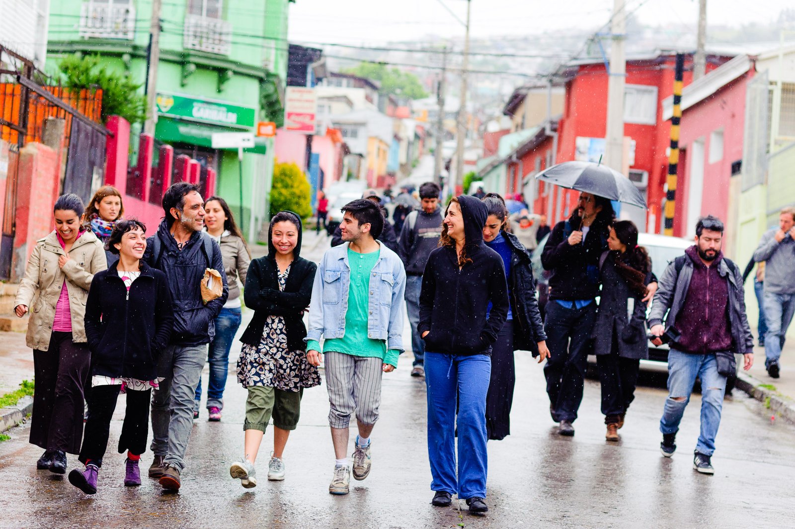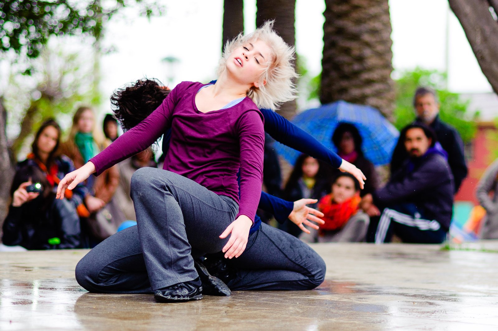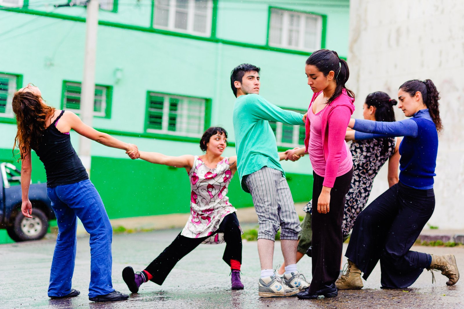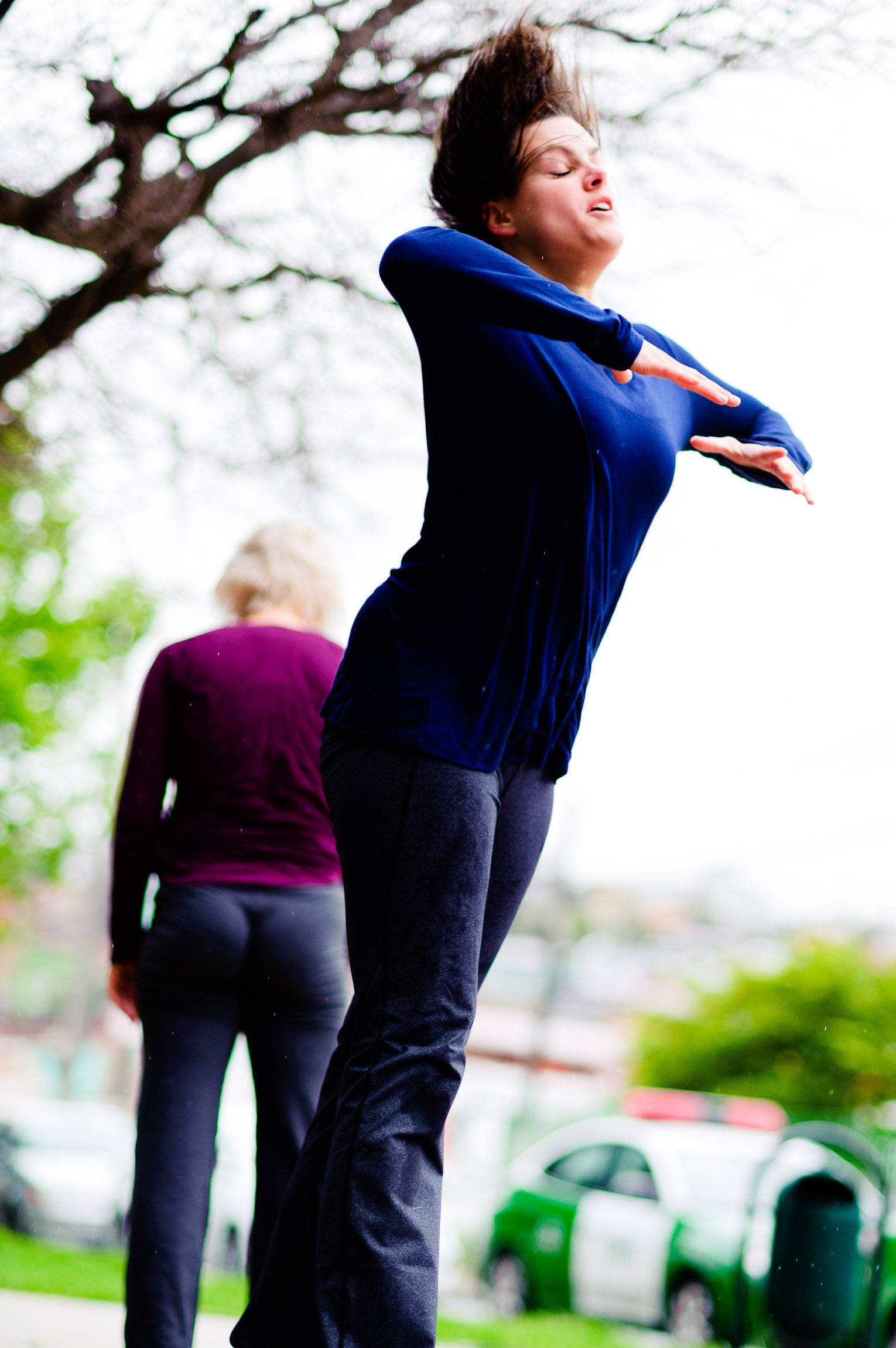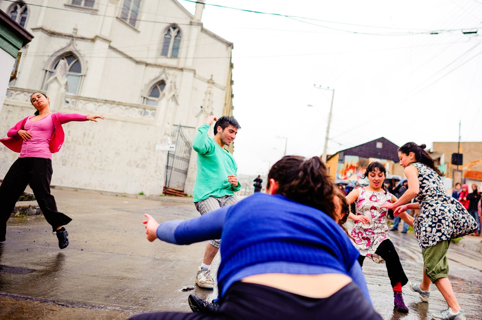 El domingo 21 de octubre el clima nos sorprendió con una constante y fina llovizna. Hasta último momento nos preuntabamos si el público llegaría. Ya sí fue, un grupo grande de personas se fueron acercando y ubicando bajo los árboles de la Plaza Mena, par apresenciar las intervenciones «Decussation # 2» a cargo dela Compañía de Lilian Moussa de Qubéc, Canadá, y «Kokoro» de las argentinas Quío Binetti y Analía Rodríguez. El clima no parecía colaborar, pero eso no fue impedimento para que el grupo de bailarines locales de «Un organismo» experiencia guiada por Iván Sánchez Ramírez, co director del Festival Danzalborde, avanzara por las calles acompañados de una procesión de personas que sostuvieron bajo la lluvia hasta el final el clima de la presentación. Verdaderamente para los que estuvimos alli, un acto colectivo de encuentro en torno a los cuerpos en movimiento.