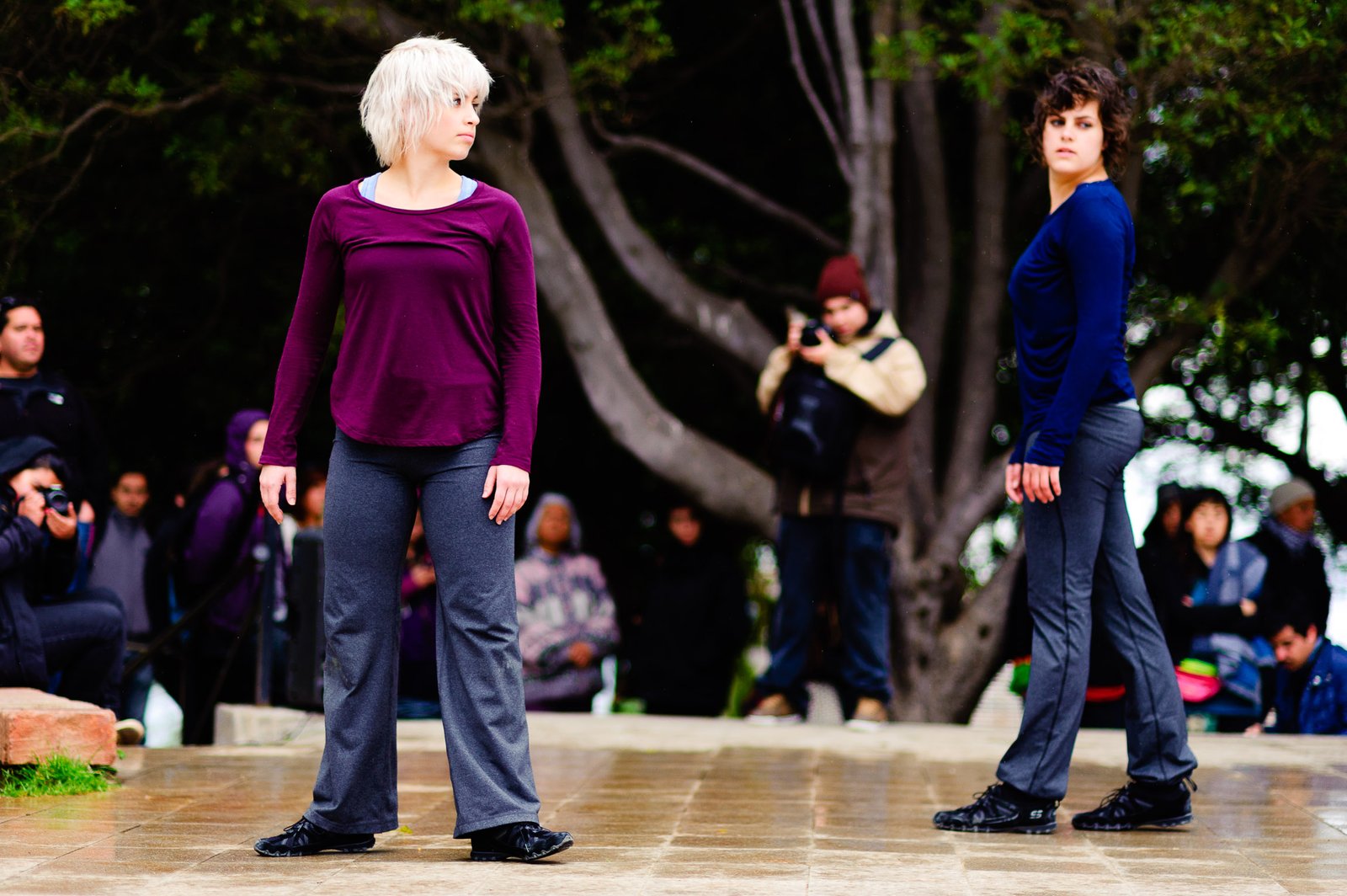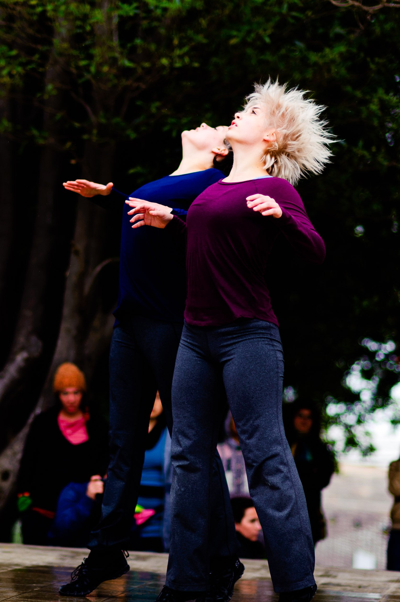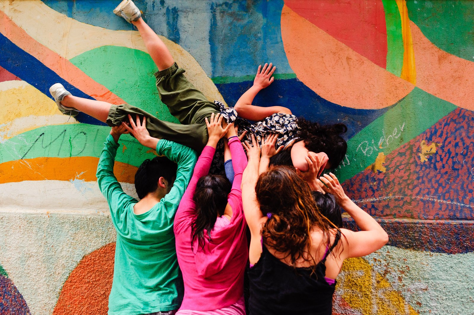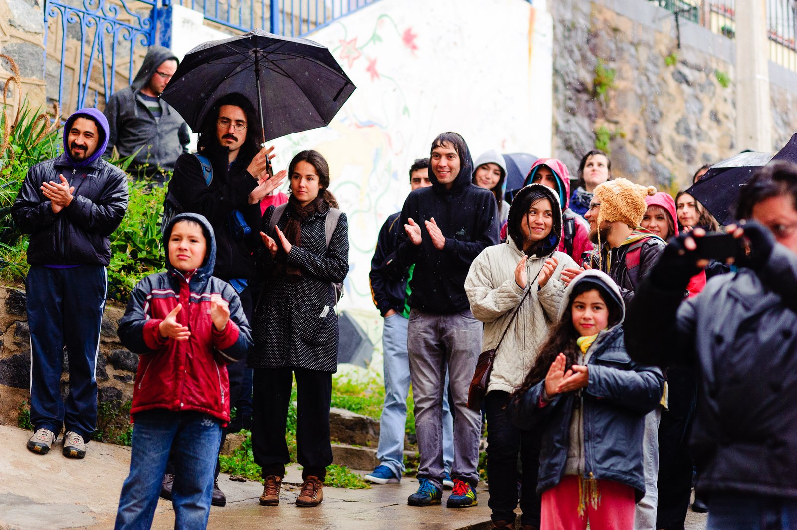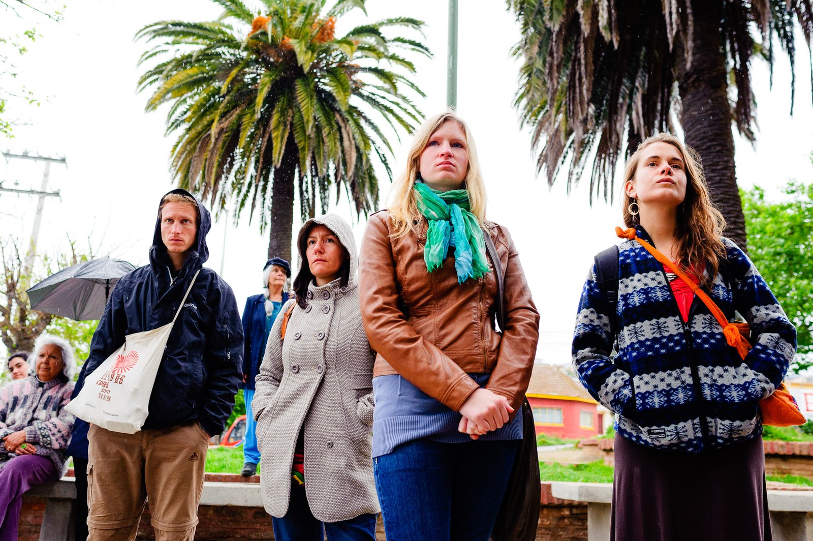 El domingo 21 de octubre el clima nos sorprendió con una constante y fina llovizna. Hasta último momento nos preuntabamos si el público llegaría. Ya sí fue, un grupo grande de personas se fueron acercando y ubicando bajo los árboles de la Plaza Mena, par apresenciar las intervenciones «Decussation # 2» a cargo dela Compañía de Lilian Moussa de Qubéc, Canadá, y «Kokoro» de las argentinas Quío Binetti y Analía Rodríguez. El clima no parecía colaborar, pero eso no fue impedimento para que el grupo de bailarines locales de «Un organismo» experiencia guiada por Iván Sánchez Ramírez, co director del Festival Danzalborde, avanzara por las calles acompañados de una procesión de personas que sostuvieron bajo la lluvia hasta el final el clima de la presentación. Verdaderamente para los que estuvimos alli, un acto colectivo de encuentro en torno a los cuerpos en movimiento.