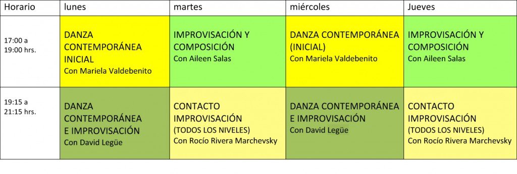 El taller de Danza Contemporánea e Improvisación  invita a estudiantes de danza, bailarines, actores, músicos,  artistas y profesionales relacionados  con el trabajo creativo y/o escénico, a la experimentación e investigación en el lenguaje del movimiento.