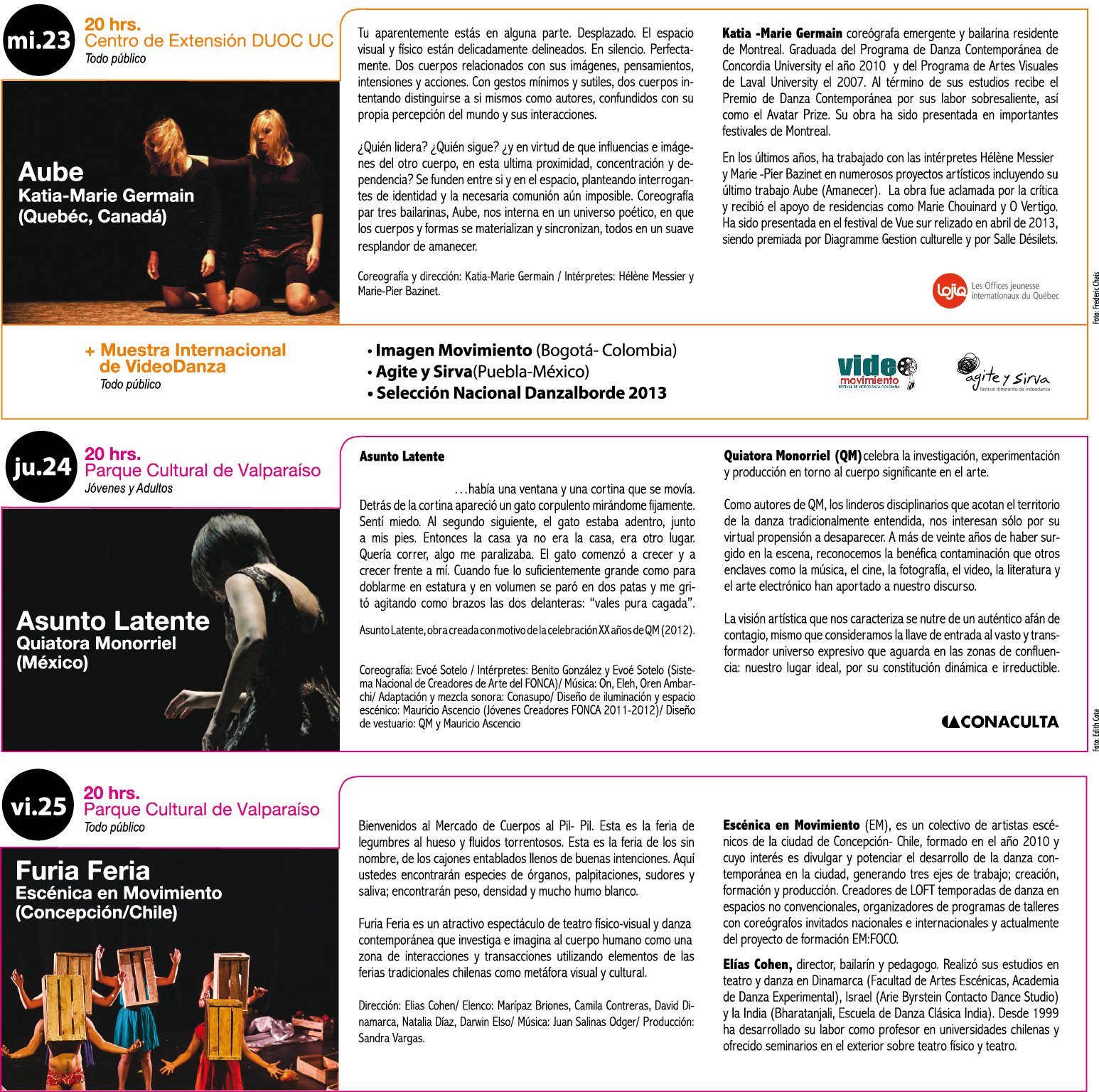 Acá encontrarás la programación del 12º Festival Internacional Danzalborde 2013