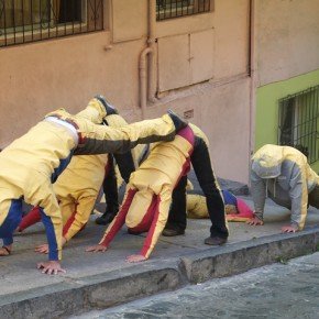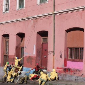 Cuerpos en el espacio, construyendo una sucesión continua de imágenes que modifican nuestros modos de ver y leer el lugar, aparece, se distancia, se aleja, se adelanta, se re escala, componiendo para el espectador un ojo coreográfico, en que los cuerpos traen la arquitectura del espacio a un primer plano.