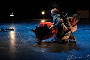 Construida en la noción de improvisación libre, alterna entre la producción de sonido y movimiento y sus creadores/intérpretes transitan entre las funciones de músico y bailarín, llegando a mezclar, unir o confundir ambas por momentos. En un espacio provisto de 2 Guitarras eléctricas, un par de sillas, amplificador, efectos y objetos para intervenir las guitarras, la obra deviene del acto mismo de tocar los instrumentos, en cualquiera de sus posibilidades y formas; de manipular los objetos, las sillas, producir sonido, los cuerpos y su estar, sus acciones/movimientos y su presente en la improvisación, interactuar y componer con el otro y con el espacio, de modo que todo está para darse a escuchar, tanto como para darse a ver.