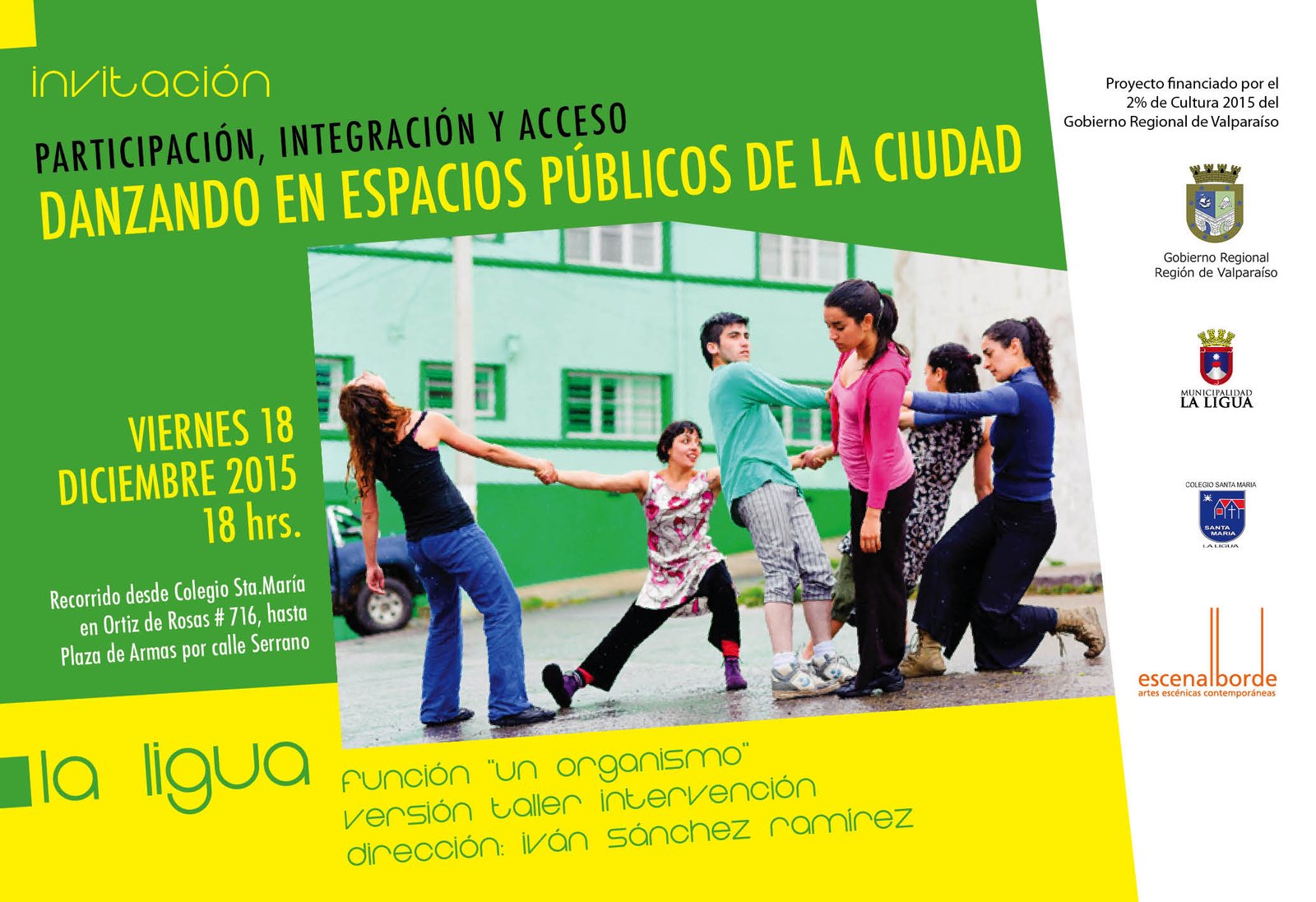 El martes 15 de diciembre se dio inicio en La Ligua al proyecto “Participación, integración, y acceso, danzando en espacios públicos de la ciudad”, financiado por el Fondo de Cultura del Gobierno Regional de Valparaíso, correspondiente al segundo llamado 2015, que posteriormente continuará en Casablanca y Quillota.
