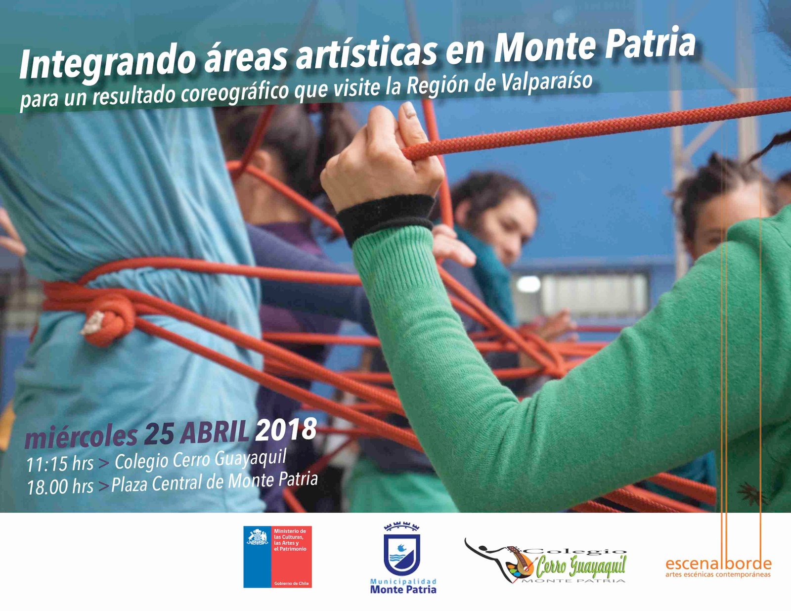 El proyecto, presentado por la Ilustre Municipalidad de Monte Patria y elaborado en complicidad por el Colegio Artístico Cerro Guayaquil y escenalborde, consiste en un proceso de 5 meses, donde los estudiantes del área de Danza del establecimiento, recibirán herramientas técnicas y de improvisación dictadas por un equipo de docentes / intérpretes de la Región de Valparaíso, trabajando en una puesta en escena final que tendrá como inspiración los pueblos originarios del territorio donde se emplaza la comuna de Monte Patria.