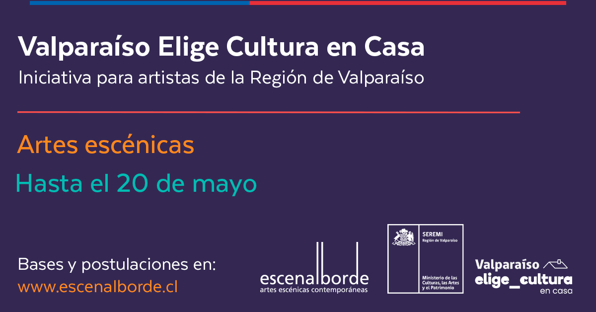 En el caso de Artes Escénicas, se elaboro un convenio con la plataforma escenalborde, Artes Escénicas Contemporáneas para la siguiente convocatoria, que tiene el objetivo de apoyar económicamente a artistas, cultores y creadores del sector cultural de la Región de Valparaíso, en específico de las disciplinas de Danza, Teatro, Circo, Performance y Títeres, quienes han visto afectada su fuente laboral debido a la crisis sanitaria del Covid-19.